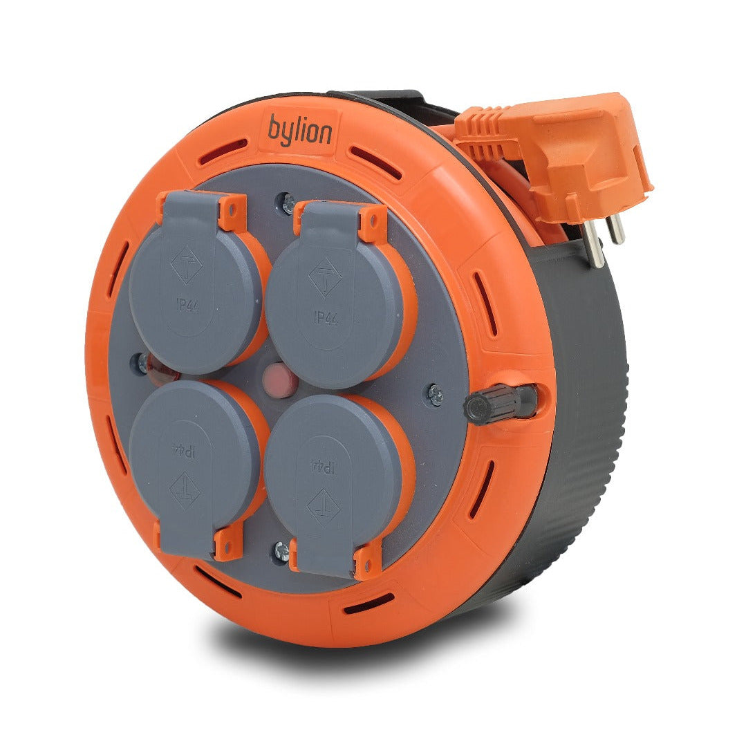 This model is equipped with four sockets and a robust H05VV-F cable with a cross section of 3G1.00mm² and a length of 5 metres, ensuring sufficient reach for a variety of applications. The orange colour of the cable increases its visibility, contributing to safety in use. With this reel, you will ensure easy and quick switching on and off of devices, as well as eliminate cable clutter. You will appreciate this reliable helper when planning events, outdoor activities or working in the workshop.