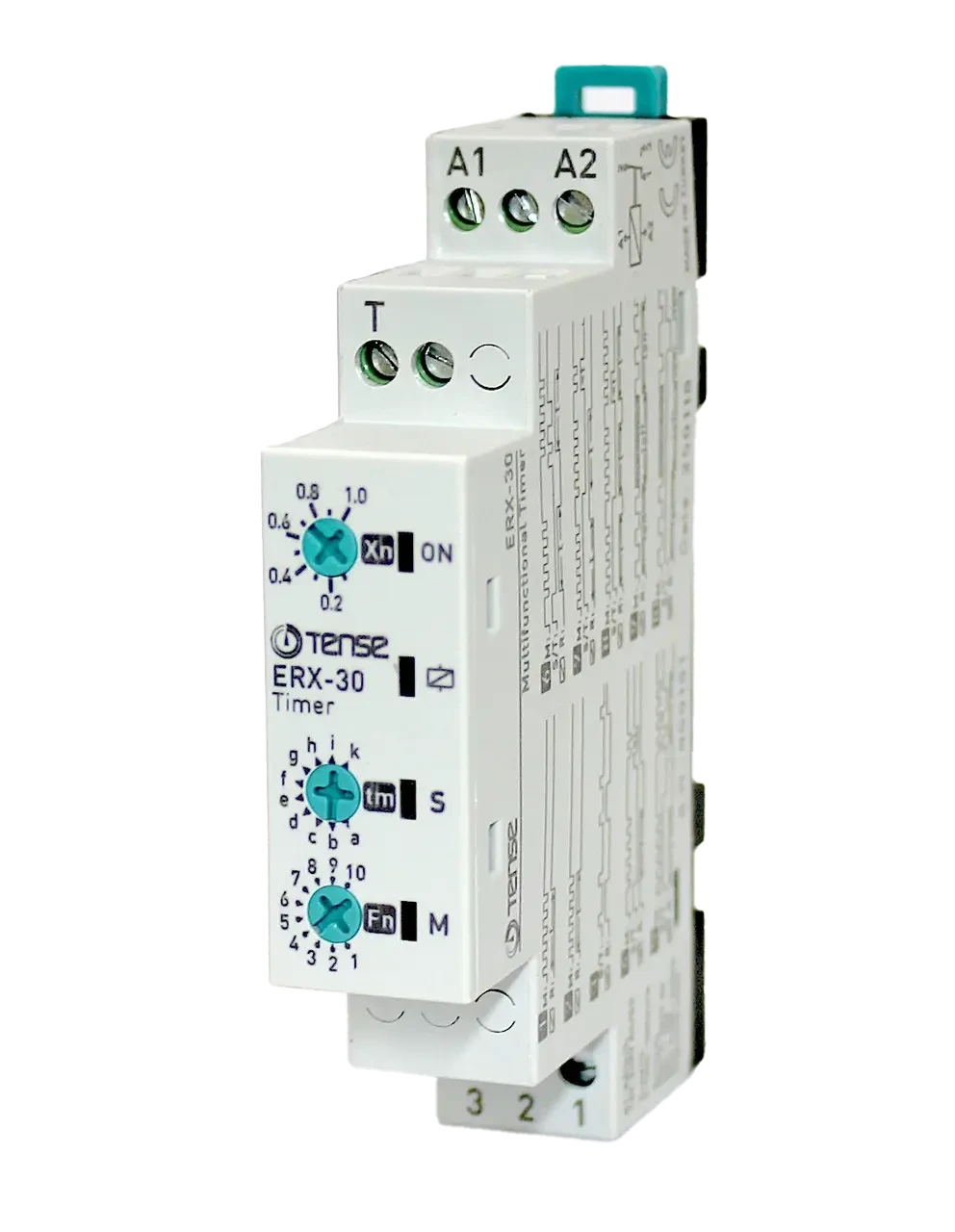 The time relay is mounted on a standard 35mm DIN rail
