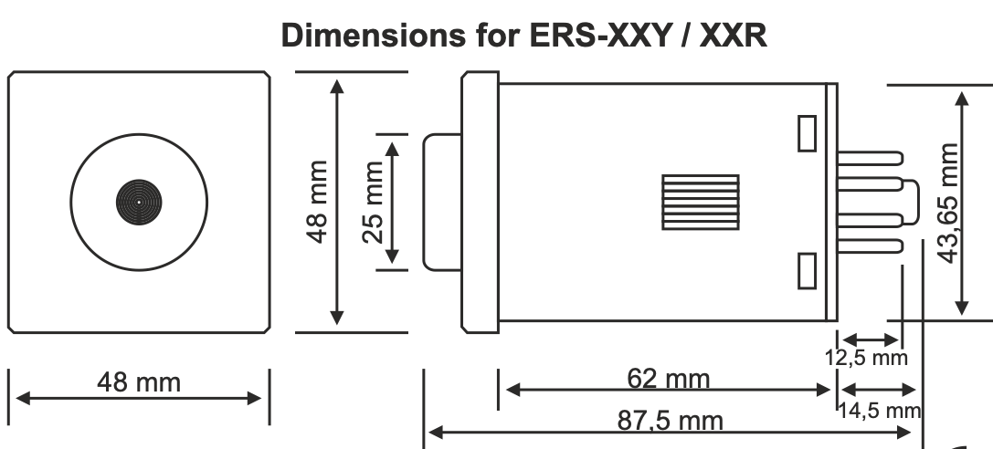 Delay relay (ON-DELAY) timer built-in monofunction 230 V/AC with 1 switching contact, socket design , 8-pin, 1/16DIN (48 x 48 mm) (TENSE)